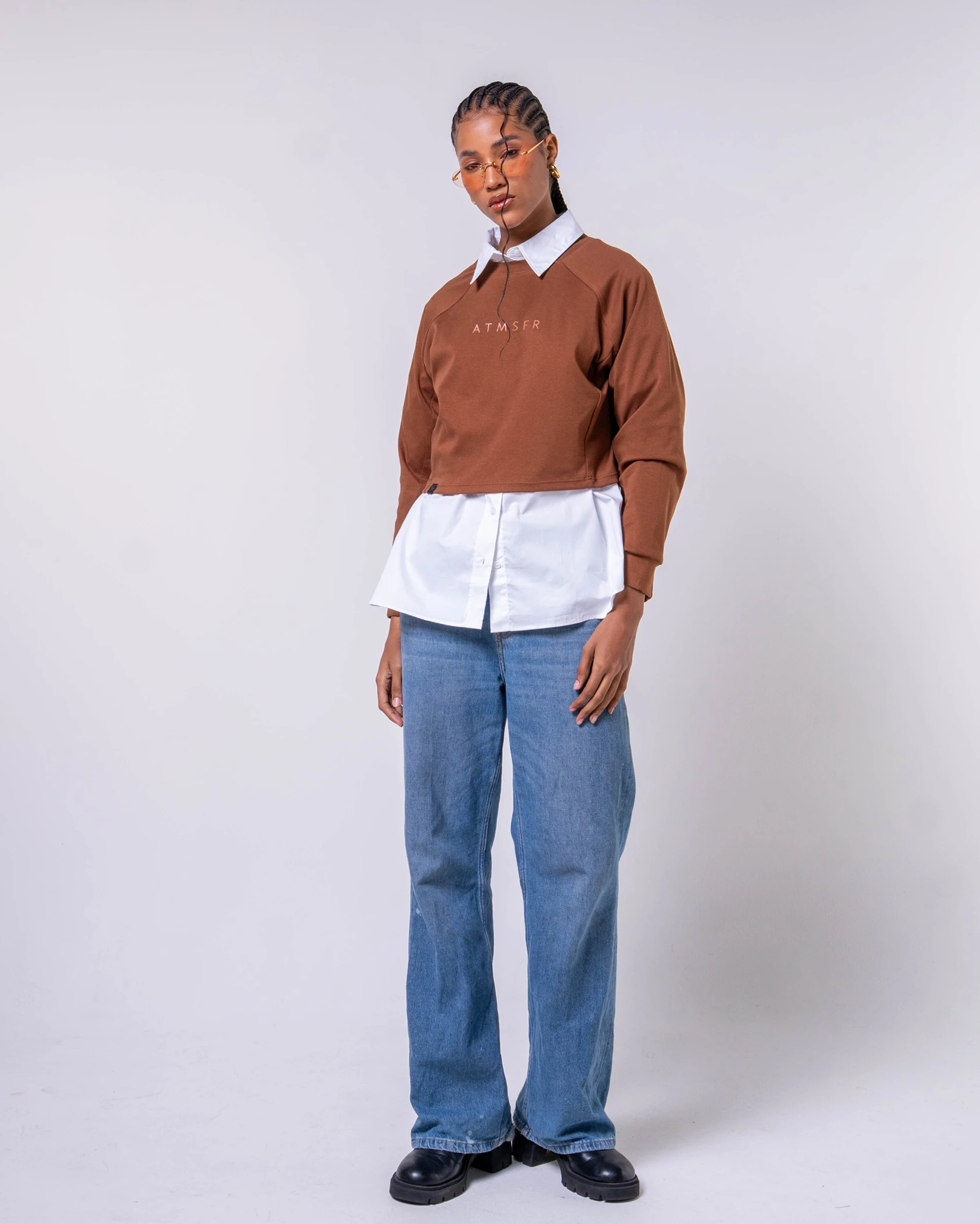 ASCEND CROPPED SWEARSHIRT BROWN